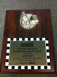 Ed Esser (2003) | Ed's TrackChaser awards were on display at his funeral service. |